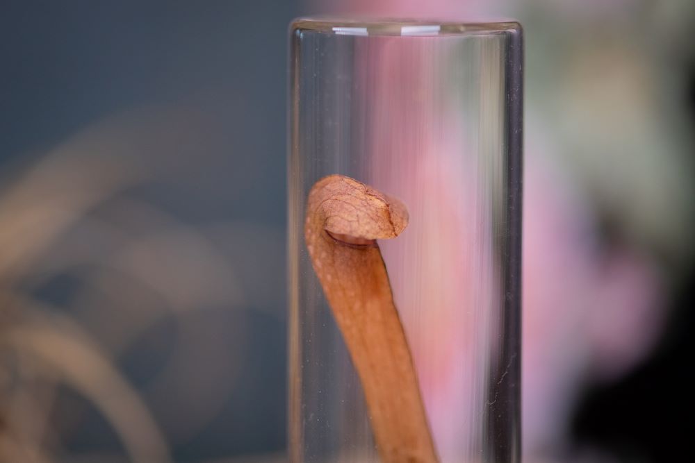 This is an actual Hooded Pitcher Plant from 1972 displayed in a glass vial. My family was on Long Island, NY prior to 1984, so these were likely foraged on one of my father's beloved excursions into the woods.
