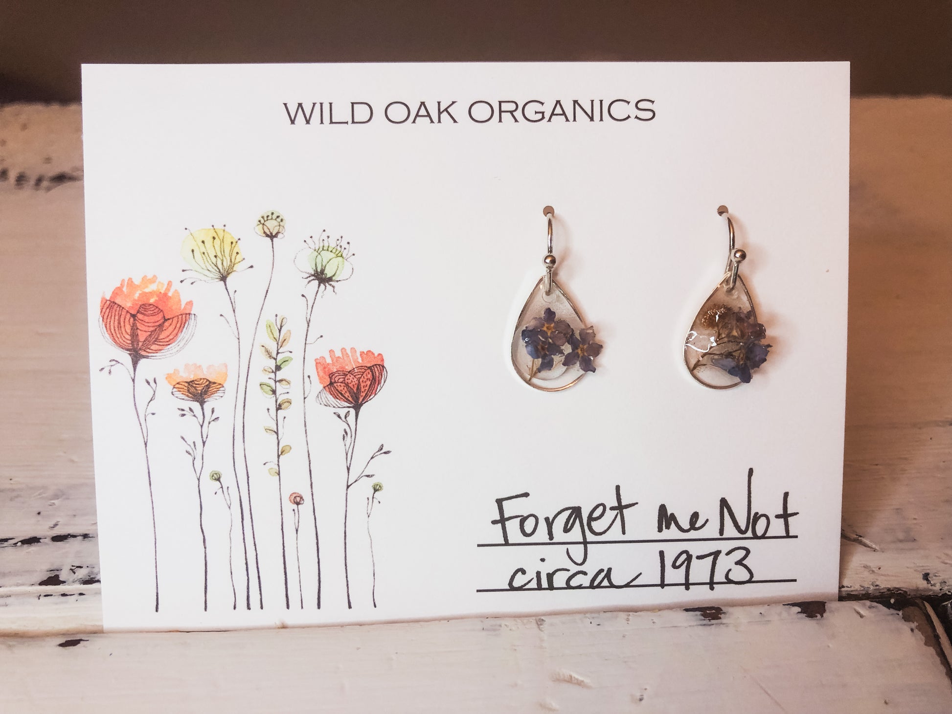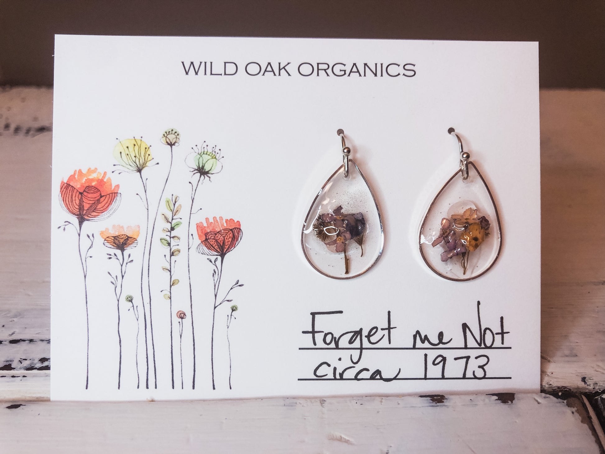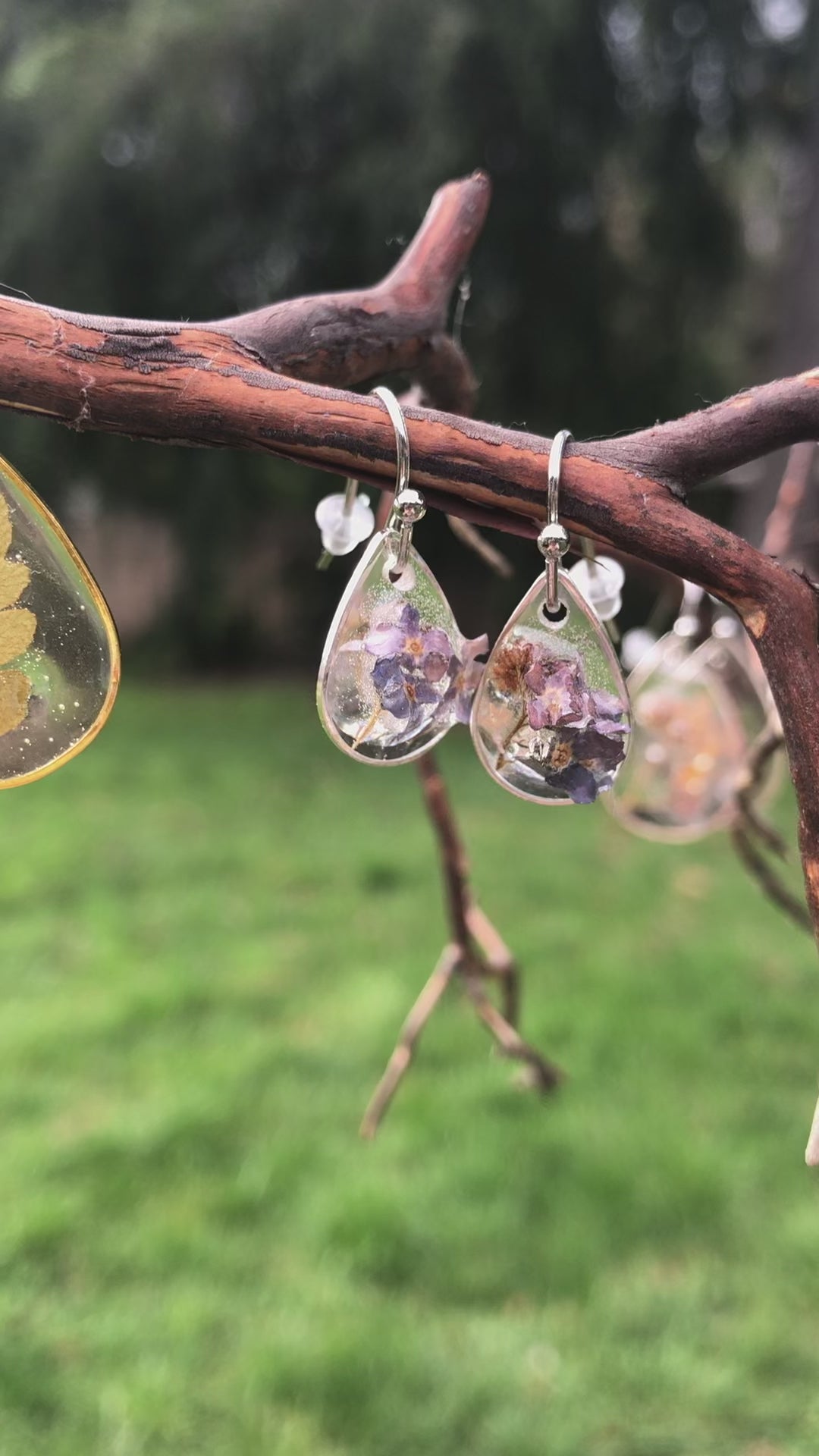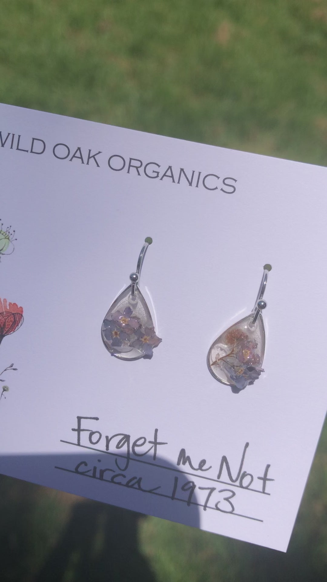 Our flowers were sand and freeze-dried, never pressed, therefore the finished product has a lovely 3-d element. The resin used is UV-resistant and incredibly lightweight! Ear wires are stainless steel. Medium teardrop is approximately 1" long by 0.6" wide and hangs 1.25" from the piercing hole. Small teardrop is approximately 0.6" long by 1/2" wide, and hangs 1" from the piercing hole. Tiny teardrop is approximately 0.4" long by 0.25" wide and hangs 0.75" from the piercing hole.