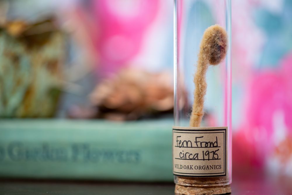 This is an actual Fern Frond from 1975 displayed in a glass vial. My family was living in Long Island, NY prior to 1984, so these were likely foraged during one of my father's beloved forest excursions.