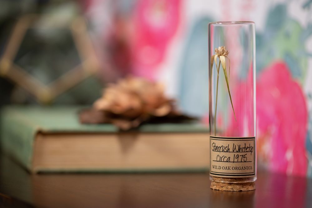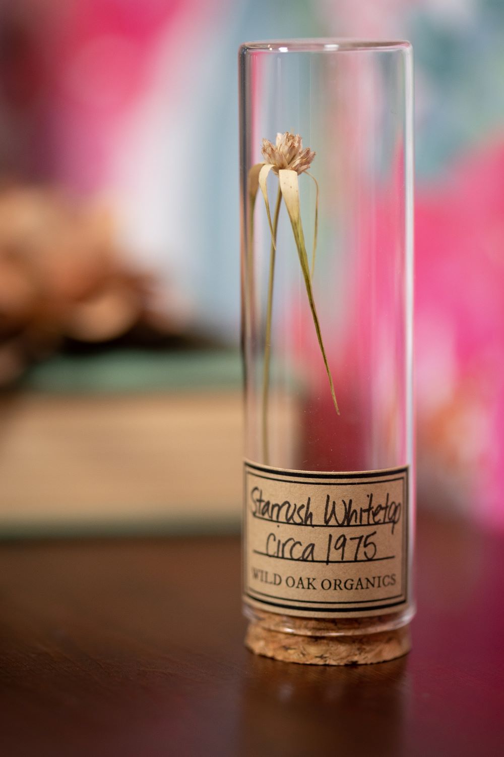 This is an actual stem of Starrush Whitetop from 1975 displayed in a glass vial. My family was in Long Island, NY prior to 1984, so these were likely foraged during one of my father's beloved forest excursions.